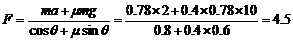 匀减速阶段:a'= μg =0.4×10 = 4m/s2 (1分)