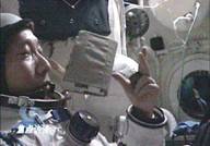 电池和医监医药包在失重状态下浮在空中 中国人从太空问候世界