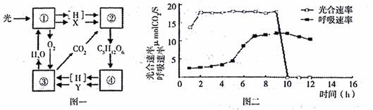 (1)图一中Y代表 。进行②过程的场所是 ,[H]在②过程中的作用是 。