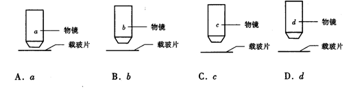 14.用显微镜的一个目镜分别与4个不同倍数的物镜(示意图)组合来观察人血涂片。当成像清晰时,每一物镜与载玻片的距离如下图所示。如果载玻片的位置不变,在一个视野中看到的细胞数最多的是