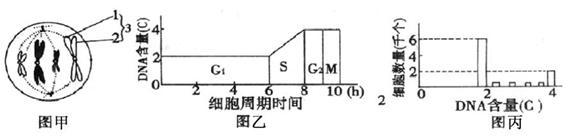 (1)图甲处于有丝分裂的_______期,1、2称为____________________,其组成成分是____________________。