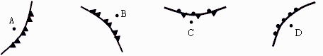 下面四幅锋面示意图中,A、B、C、D四地大致处于同一纬度,此时气温最低的地点是(不考虑地形和海陆因素)