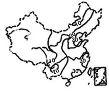 如图为某类影响我国农业的自然灾害等值线分布图,此图反映的自然灾害可能是: