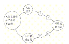 (1)写出图中字母表示的含义: A.生产规模_____________,B.对自然资源_____________,C.生产活动________________,D.破坏_________________。