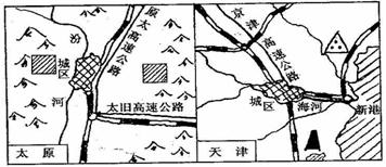 8.读太原(图)和天津图两城市示意图,回答: