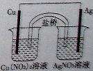 用铜片、银片、Cu(NO3)2溶液、AgNO3溶液、导线和盐桥(装有琼脂-KNO3的U形管)构成一个原电池(如右图)。以下有关该原电池的叙述正确的是