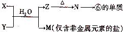 (5)由表中元素①③④⑥⑧所形成的常见物质X、Y、Z、M、N可发生以下反应: