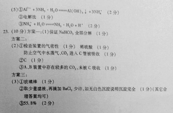 (3)方案三:称取一定量样品,置于小烧杯中,加适量水溶解,向小烧杯中加入足量氯化钡溶液,过滤洗涤,干燥沉淀,称量固体质量,计算: