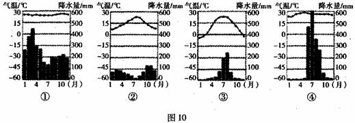 (2)比较图中甲、丙两地气候主要特征的差异。(6分)