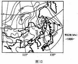 (1)若图示地区两条等温线间的温差为8°C,则甲、乙等温线数值分别是 °C和 °C。(2分)