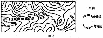 25.图14为“我国东南部某山区公路规划线路设计图”,读图回答下列问题。(10分)