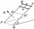 25.(18分)如图13-甲所示,两根质量均为 0.1 kg完全相同的导体棒a、b,用绝缘轻杆相连置于由金属导轨PQ、MN架设的斜面上。已知斜面倾角θ为53°,a、b导体棒的间距是PQ、MN导轨间间距的一半,导轨间分界线OO′ 以下有方向垂直斜面向上的匀强磁场。当a、b导体棒沿导轨下滑时,其下滑速度v与时间的关系图像如图13-乙所示。若a、b导体棒接入电路的电阻均为1Ω,其它电阻不计,取g=10 m/s2,sin53°=0.8,cos53°=0.6,试求: