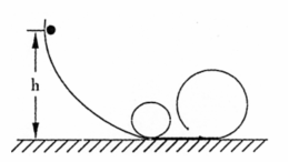 21.(10分)如图所示,一条圆弧轨道与大小不同的两个圆环轨道连接在一起,质量为m的小球从高为h处由静止开始滑下,在小环(底部稍错开一些)内侧运动一周后.刚好能通过大环的最高点.若大环的半径是小环半径的2倍,轨道表面光滑,不计空气阻力,重力加速度为g,求