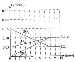 19.(10分)在20L恒容的密闭容器中,加入3molSO3(g)和1mol氧气,在某温度下使其反应,反应至4min时,氧气的浓度为0.06mol/L,当反应到8min时,反应到达平衡。