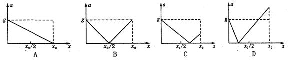 如图所示,一根轻弹簧竖直固定在水平地面上,在弹簧的正上方有一个物块,物块从高处自由下落到弹簧上端O,将弹簧压缩.弹簧被压缩了x0时,物块的速度变为零。从物块与弹簧接触开始,物块的加速度的大小随下降的位移