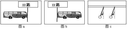3、如图a、b所示,是一辆质量为6×103kg的公共汽车在t=0和t=3s末两个时刻的两张照片。当t=0时,汽车刚启动,在这段时间内汽车的运动可看成匀加速直线运动。图c是车内横杆上悬挂的拉手环经放大后的图像,θ=370,根据题中提供的信息,可以估算出的物理量有: