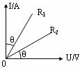 两电阻R1、R2的电流I随电压U变化的关系图线如图所示,其中R1的图线与纵轴的夹角和R2的图线与横轴的夹角都是θ=30º.若将R1、R2串联起来接入电路中,则通电后R1、R2消耗的电功率之比P1∶P2等于