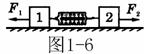 10.放在光滑水平面上的物块1、2用轻质弹簧秤相连,如图1-6所示.今对物块1、2分别施以相反的水平力F1 、F2.且F1大于F2,则弹簧秤的示数( )