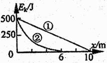 构建和谐型、节约型社会深得民心,遍布于生活的方方面面。自动充电式电动车就是很好的一例。将电动车的前轮装有发电机,发电机与蓄电池连接,当骑车者用力蹬车或电动自行车自动滑行时,自行车就可以通过发电机向蓄电池充电,将其他形式的能转化成电能储存起来。现有某人骑车以500J的初动能在粗糙的水平路面上滑行,第一次关闭自充电装置,让车自由滑行,其动能随位移变化关系如图中的线①所示;第二次启动自充电装置,其动能随位移变化关系如图线②所示,则第二次向蓄电池所充的电能是