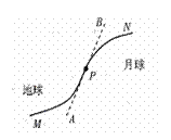 段曲线表示转移轨道的一部分,P是轨道上的一点,直线AB过P点且和两边轨道相切。则( )