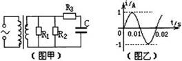 如图甲所示,理想变压器原、副线圈的匝数比为10∶1,R1=20Ω,R2=30Ω,C为电容器。已知通过R1的正弦交流电如图乙所示,则(