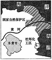 从山东省东营市中心向东南13千米有一片盐碱地。2008年底,美国杜邦公司在此建设了化工厂,它距国家级自然保护区黄河三角洲湿地25千米。读图,回答37-38题 。