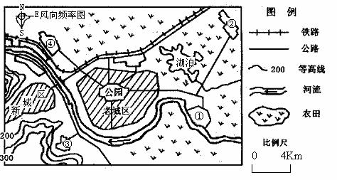 A.新城区位于河流上游,水质较好 B.尽量少占农田,保护耕地资源