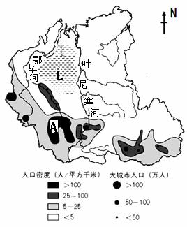 42.(13分)读右侧俄罗斯局部地区人口与城市分布图,完成下列问题。
