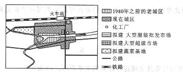 (2)随着城市社会经济的发展,拟在图示地区建大型服装批发市场、大型超级市场、蔬菜基