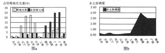 材料二 “中国沿海耕地、水资源对比图”(图a)、“中国沿海地区水土协调度面积图”