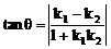 ,其中k1,k2分别表示1及2斜率,当1或2斜率不存在时,画图通过三角形求解,1与2夹角为θ∈(0,