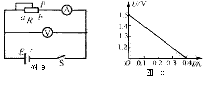 测定电源的电动势和内电阻的实验电路如图9所示,根据实验测得数据作出的U-I图像如图10所示。由此可知这个干电池的
