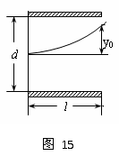 20.如图15所示,水平放置的两块平行金属板长L = 4cm,两板间距d = 10cm,两板间电压为U=90V,且上板带正电,一个电子沿水平方向以速度v0=2.0×106m/s,从两板中央射入并从右端射出,(不计电子重力,电子电量e=1.6×10-19C,电子质量m=0.90×10-30kg求: