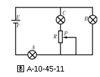 山西省山大附中2010届高三12月月考如图A-10-45-11所示的电路,A、B、C为三个相同的灯泡,其电阻大于电源内阻,当变阻器的滑动触头P向上移动时 ( BD