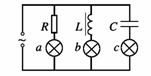 8(2009年北京宣武区高三月考)如图所示,三只完全相同的灯泡a、b、c分别与电阻R、电感L、电容C串联,再将三者并联,接在“220V,50Hz”的交变电压两端,三只灯泡亮度相同,若将交变电压改为“220V,500Hz”,则( D