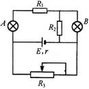 10(2009年上海虹口区高三期末1)如图所示的电路中,灯泡A和灯泡B原来都是正常发光的。现在突然灯泡A比原来变暗了些,灯泡B比原来变亮了些,则电路中出现的故障可能是