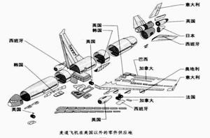 右图是《麦道飞机在美国以外的零件供应地分布图,该图最能反映出的历史信息是