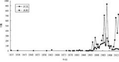14.1833~1915年“共和”、“民主”这两个关键词在部分著作和报刊中出现频率的统计图 1905-1913年“共和”出现的频率远远高于“民主”的频率,其原因包括