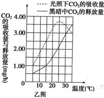 40.在乙图中,以测定的CO2吸收量与释放量为指标,研究温度对某绿色植物光合作用与呼吸作用的影响,结果如图所示。下列分析正确的是