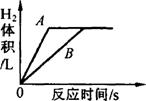 (4分)某研究小组将足量的A、B两种金属同时分别放入两份质量分数相同的少量稀盐酸中,根据实验现象,绘制的反应生成H2的体积