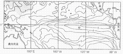 据报道,2006年形成了新的一轮厄尔尼诺现象。下图为“厄尔尼诺发生时太平洋表层水温异常现象示意图”。读图回答1-3题。