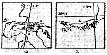 36.(36分)读下图中甲、乙两图,结合所学地理知识分析回答下列问题。