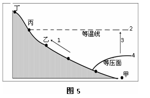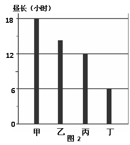 图2为同一日期甲、乙、丙、丁四个地点的昼长状况,据此回答3-5题