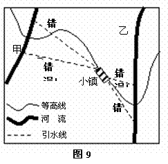 17.若图中两条小河的流量相当,则进入小镇的引水线最合理的是