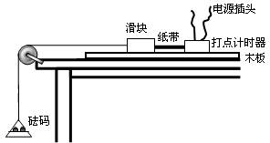 7、(2010届浙江省东阳中学高三期中) 物理小组在一次探究活动中测量滑块与木板之间的动摩擦因数.实验装置如图,一表面粗糙的木板固定在水平桌面上,一端装有定滑轮;木板上有一滑块,其一端与电磁打点计时器的纸带相连,另一端通过跨过定滑轮的细线与托盘连接.打点计时器使用的交流电源的频率为50 Hz.开始实验时,在托盘中放入适量砝码,滑块开始做匀加速运动,在纸带上打出一系列小点.