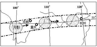 2009年7月22日,我国部分地区出现了罕见的日全食天象。日、月、地三者位于同一直线,月影刚好投影在地球表面,且自西向东扫过我国的长江流域,形成日全食观察带(如图1)。读图1回答1-3题。