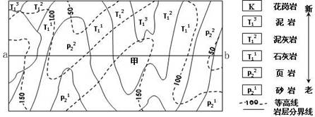 4.下列四幅剖面图与沿ab剖面线的剖面图一致的是