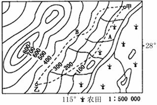 读我国某区域等高线地形图(虚线表示拟建的公路线,图5),回答11-14题。