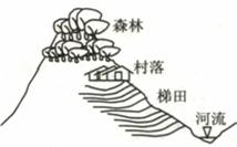 图7为哈尼族梯田生态系统示意图,这一结构被文化生态学家盛赞为江河--森林--村寨--梯田四度同构的人与自然高度协调的、可持续发展的、良性循环的生态系统。完成15-16题。
