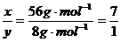 因反应前后固体的质量没有发生变化,因此第一个反应质量的减小等于第二个反应质量的增加,即56x g·mol-1=8 y g·mol-1,所以